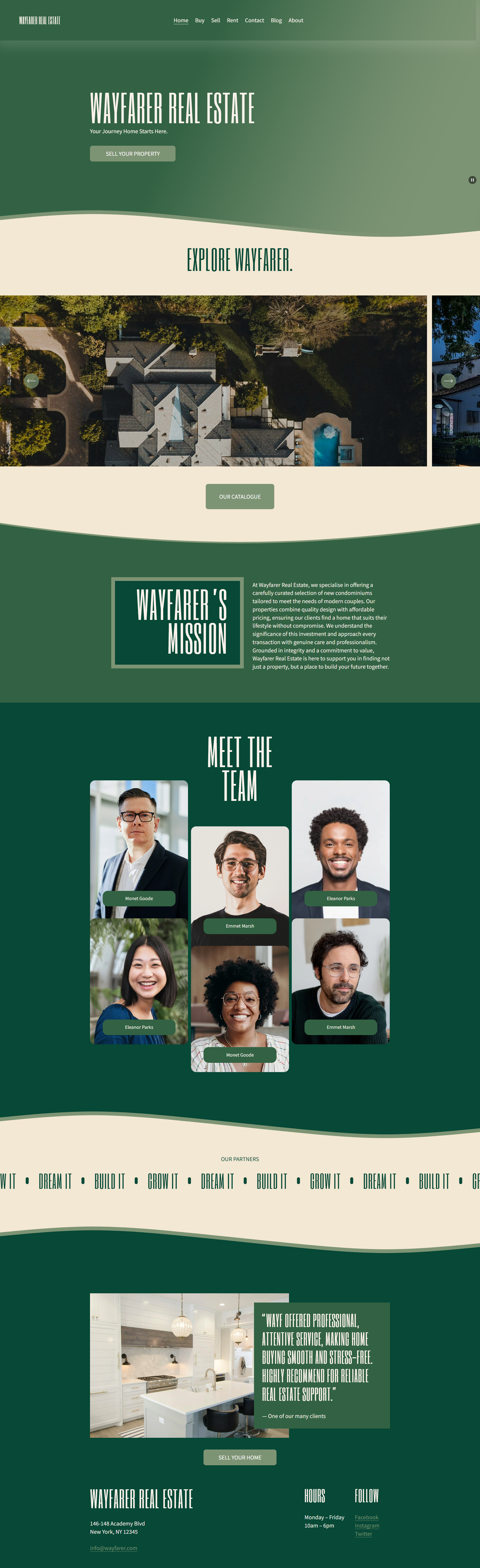For Wayfarer Real Estate, I developed a 10-page website featuring a clean, modern design that highlights their property listings and services. Pages include Home, About, Listings, Blog, Testimonials, FAQs, Contact, Buy page, Sell page, and Rent page. The site offers an intuitive interface with clear calls-to-action, ensuring easy navigation. Close collaboration with their marketing team guaranteed brand alignment and seamless functionality. The responsive, fast-loading platform delivers an engaging experience across all devices.